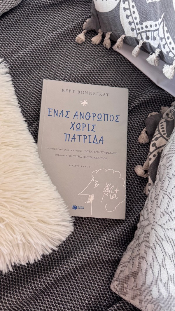 ✨ Ένας άνθρωπος χωρίς πατρίδα του Κερτ Βόνεγκατ είναι ένα βιβλίο που δεν ωραιοποιεί τίποτα. Με σαρκασμό, χιούμορ και πικρή αλήθεια, ο συγγραφέας μιλά για την πολιτική, τη διαφθορά, την κατάθλιψη και την ίδια την ανθρώπινη φύση. Παρότι γράφτηκε το 2005, σήμερα – το 2025 – διαβάζεται σαν προφητεία που επαληθεύεται. Είναι ένα κείμενο απλό στη μορφή, αλλά βαθιά απαιτητικό στην αποδοχή του· ένα βιβλίο που σε ταρακουνά, σε θυμώνει και σε κάνει να χαμογελάς μέσα στο σκοτάδι. Ένα έργο που διαβάζεται σε λίγες ώρες, αλλά μένει για καιρό μέσα σου.